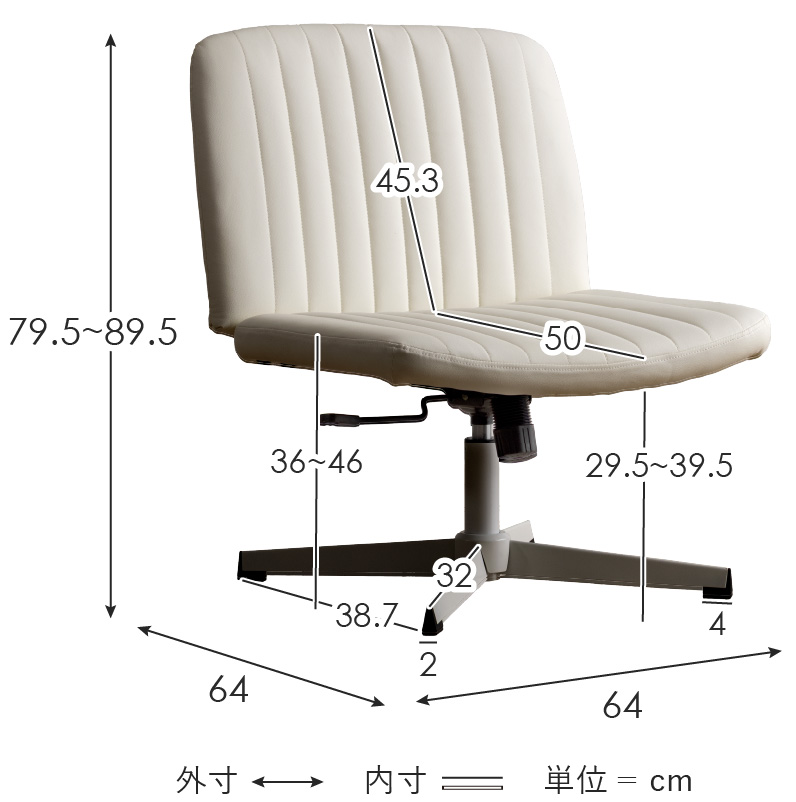 約幅64×奥行き64×高さ79.5〜89.5cm