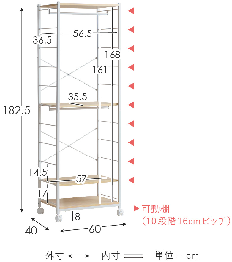 | サイズ | 約幅60×奥行き40×高さ182.5cm |