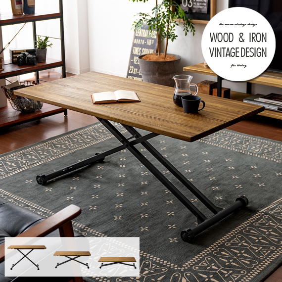 テーブル 昇降式テーブル リビングテーブル リフティングテーブル ガス圧式 おしゃれ 木製 センターテーブル ヴィンテージ インダストリアル 昇降テーブル