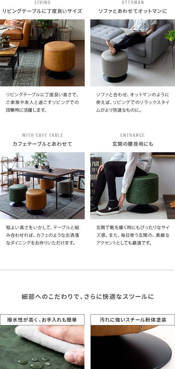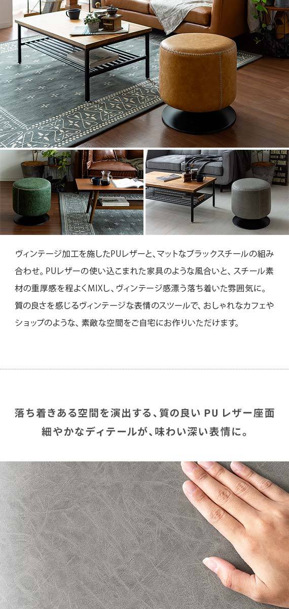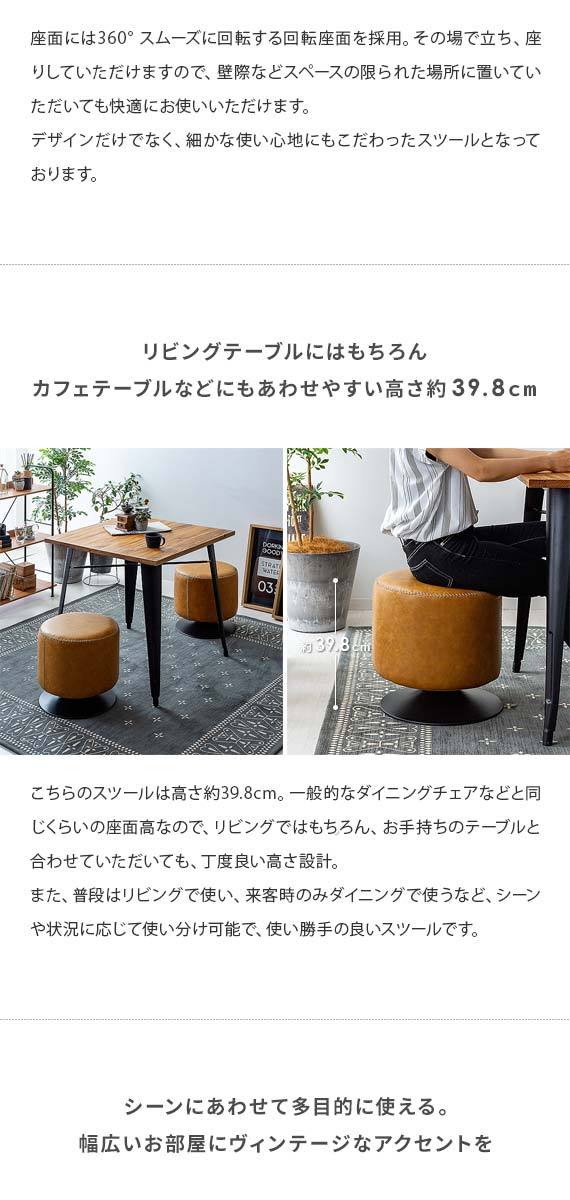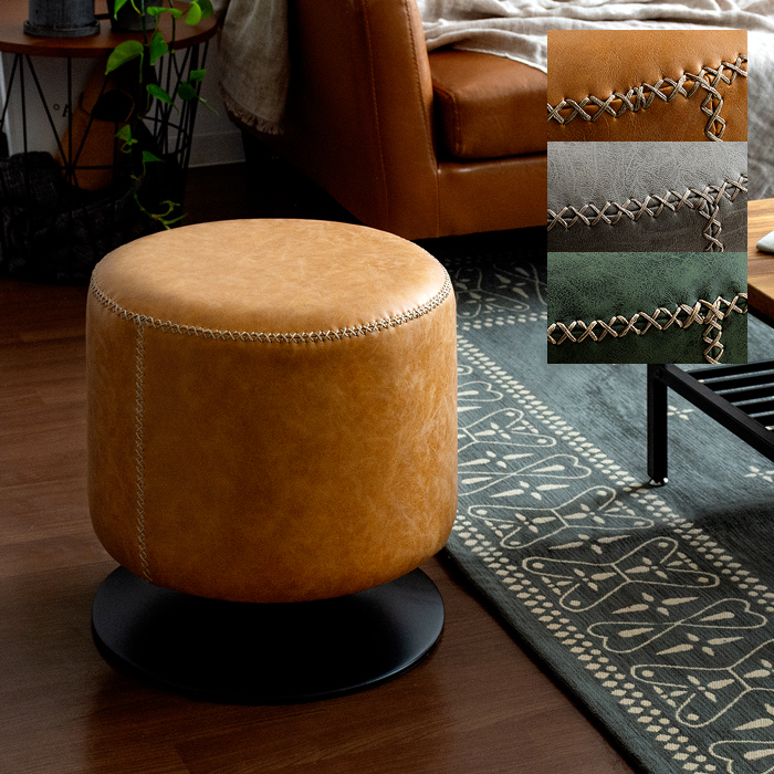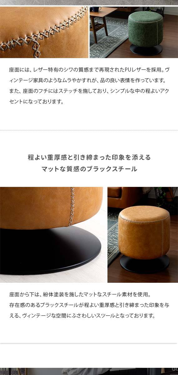 スツール 椅子 おしゃれ チェア イス ラウンドチェア ラウンドスツール レザー オットマン 回転式 カフェ 北欧 ヴィンテージ インダストリアル