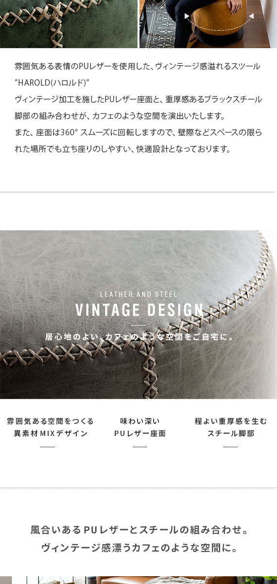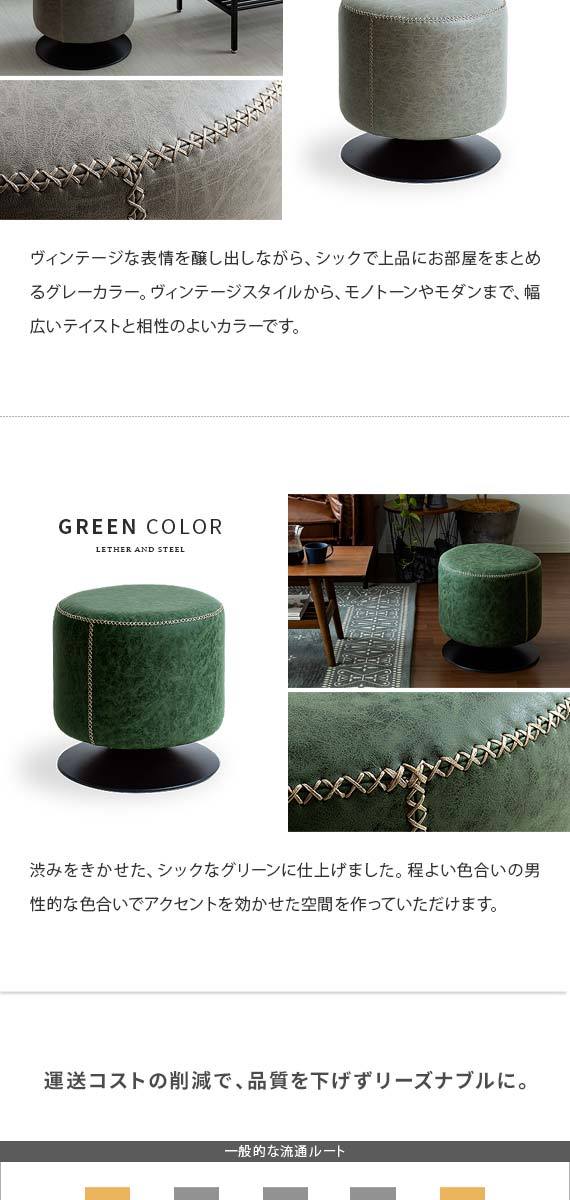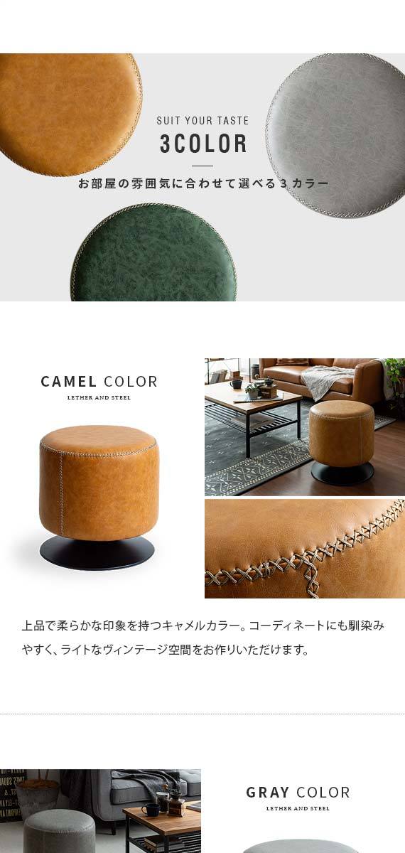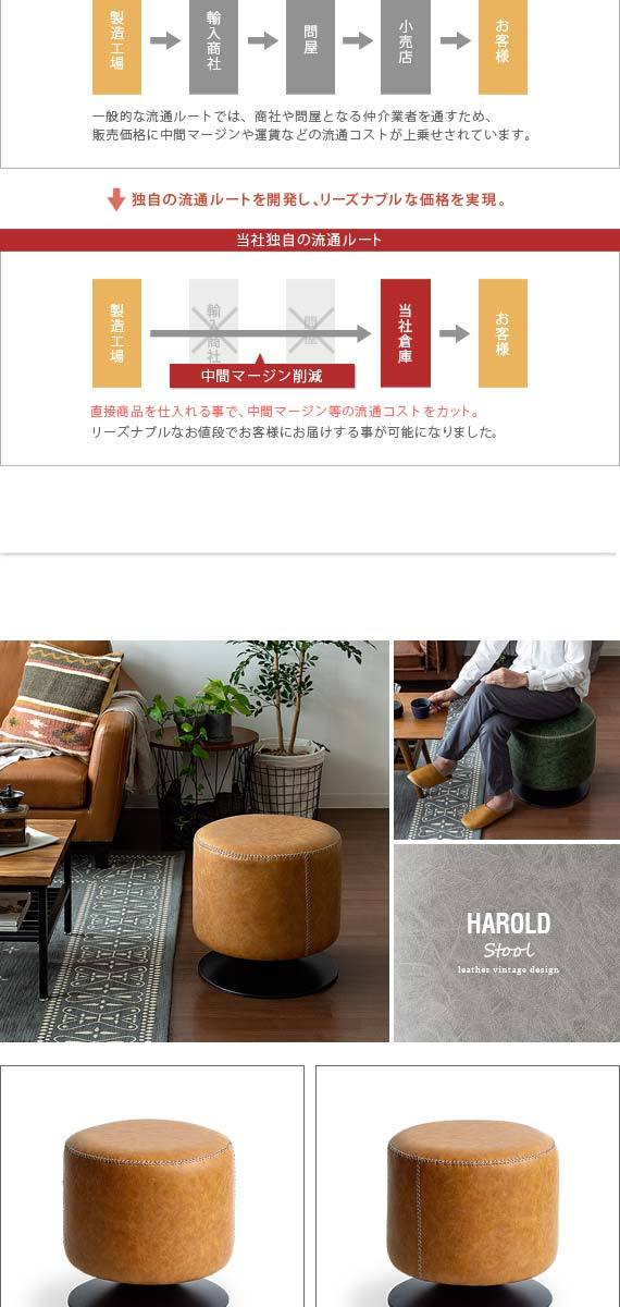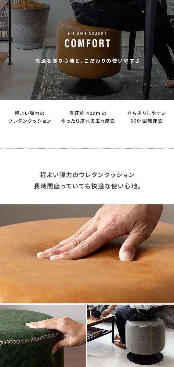 スツール 椅子 おしゃれ チェア イス ラウンドチェア ラウンドスツール レザー オットマン 回転式 カフェ 北欧 ヴィンテージ インダストリアル