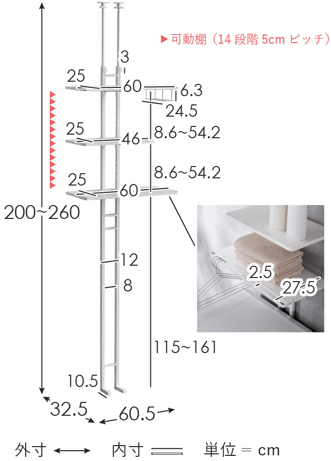 【サイズ】約幅60.5×奥行き32.5×高さ200〜260cm