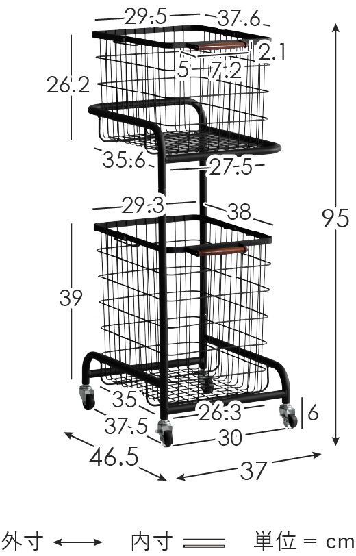 | サイズ | 約幅37×奥行き46.5×高さ95cm(キャスター、バスケット含む) |