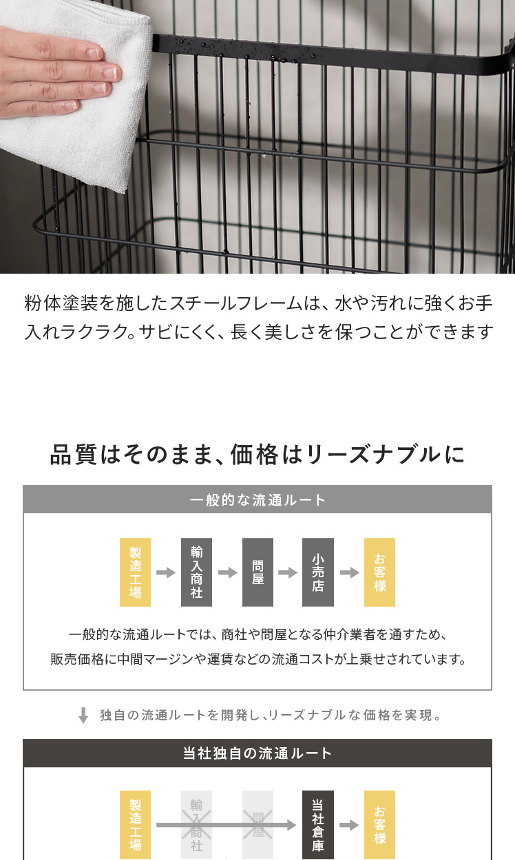 | 材質 | スチール部/スチール(粉体塗装) 取っ手/天然木 |
