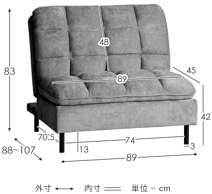 | サイズ | 約幅89×奥行き88〜107×高さ83cm |