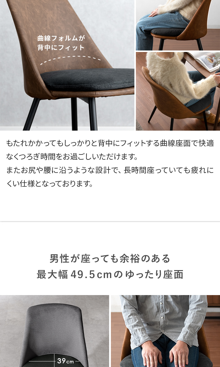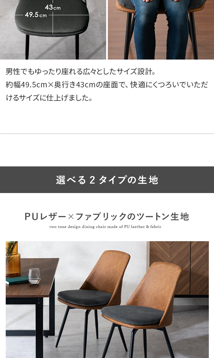 ダイニングチェア 2脚セット 椅子 北欧 モダン カフェ インダストリアル 食卓椅子 PUレザー ファブリック デスクチェア ダイニング椅子 固定式