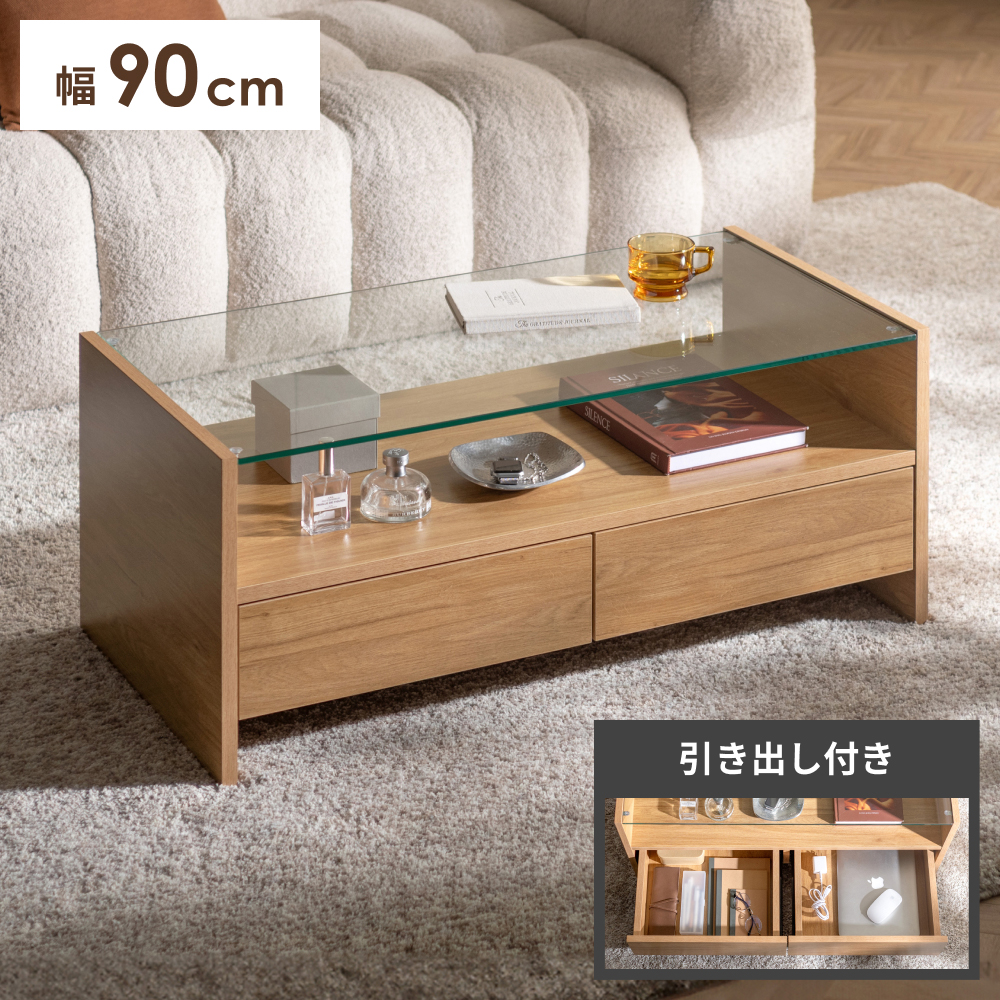 センターテーブル ローテーブル テーブル 収納付き 木目調 木製 ウッドテーブル リビングテーブル 小物収納 大容量 収納 ガラス シンプル ナチュラル