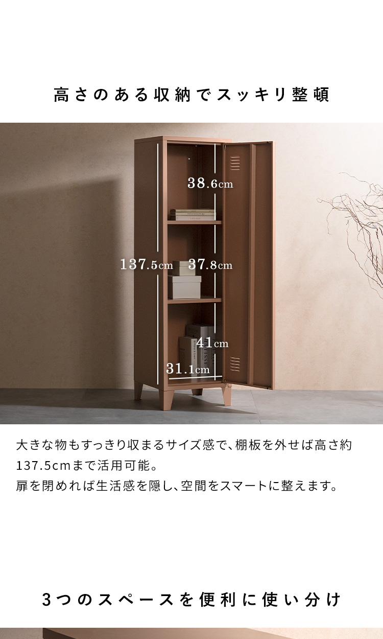 ロッカー キャビネット 収納 書庫 棚 ラック ロッカー 1人用 スリム 省スペース 玄関 オフィス 事務所 会社 店舗 病院 学校 3段 通気口付き 更衣室 ハイタイプ