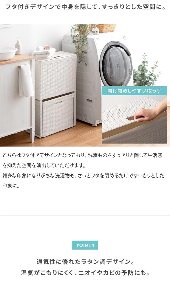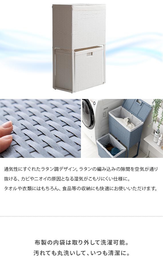 ランドリーバスケット おしゃれ 2段 ふた付き スリム 大容量 ラタン調 洗濯カゴ 洗濯かご ランドリーボックス 洗濯物入れ 脱衣カゴ ランドリー収納