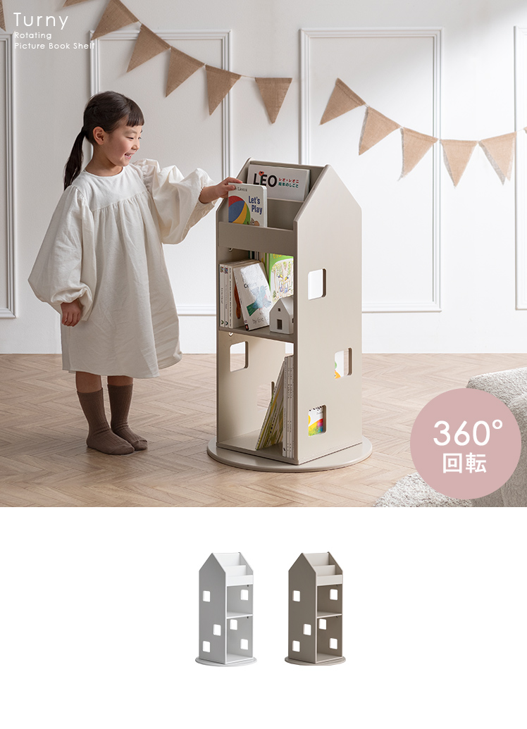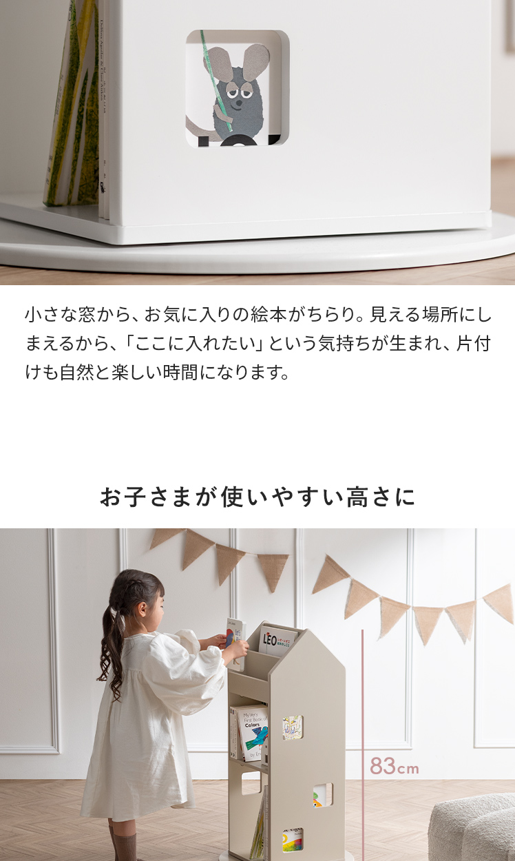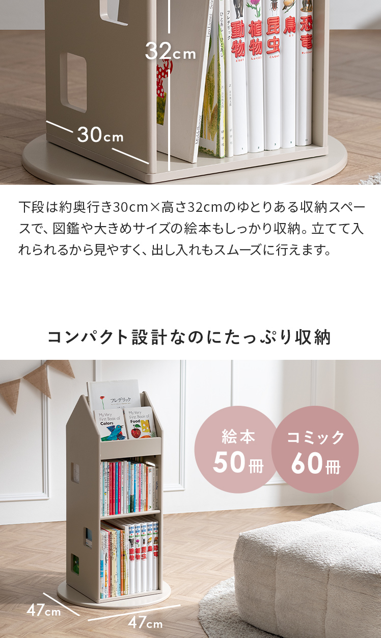 本棚 回転 スリム 棚 回転式本棚 絵本ラック 絵本棚 ディスプレイラック 収納棚 ブックタワー こども キッズ 省スペース コンパクト 絵本 コミック 図鑑 A4