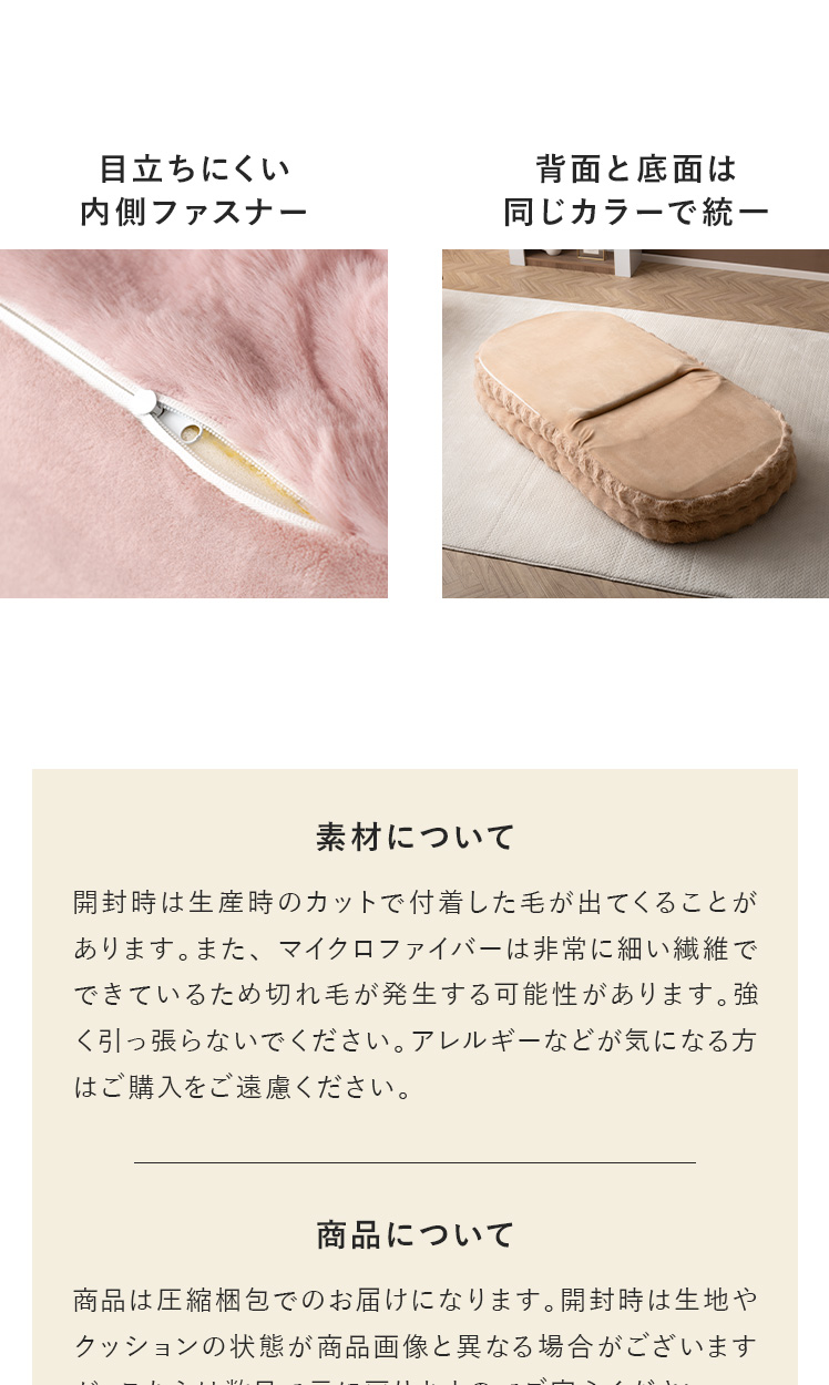 | 備考 | 完成品 本体カバー上部・クッションカバーの取り外し可能、クッション2個付き クッションカバーは手洗い洗濯可能 ※若干の個体差により、表記サイズと多少の差異が生じる場合がございます。 |