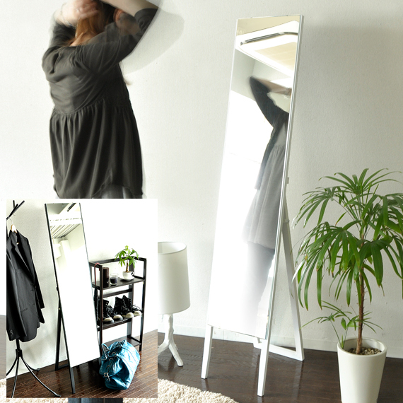 ミラー/鏡/送料無料/壁掛けミラー/スタンドミラー/玄関ミラー姿見全身鏡/全身ミラー/玄関鏡/壁掛け鏡/ミラースタンド/立てかけミラー/おしゃれ/シンプル/スリム/飛散防止ミラー/省スペース/北欧/モダン/木製/白色/黒色/ミッドセンチュリーナチュラル人気/アンティーク/カフェ/かわいい