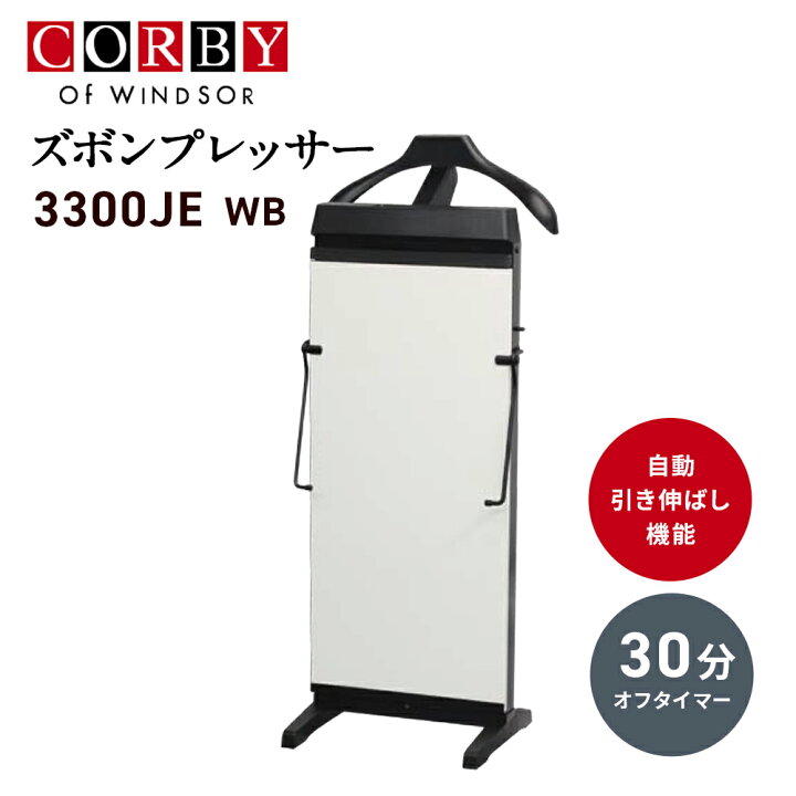 Corby (コルビー) ズボンプレッサー 3300JEWB ホワイト 自動引き伸ばし機能 タイマー ネクタイハンガー付 アクセサリー棚付 ジャケットハンガー付 パンツプレス ズボンしわ取り