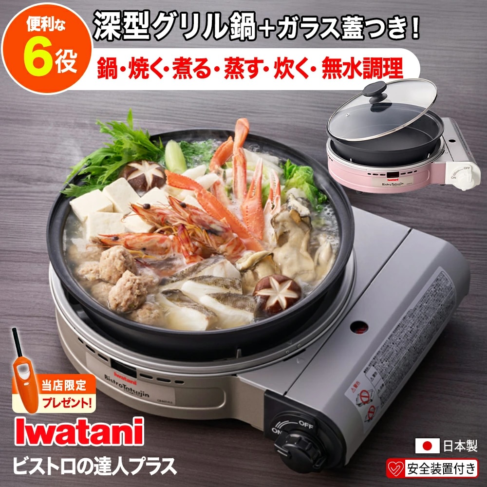 【最新モデル】ビストロの達人プラス さくらピンク 岩谷産業 イワタニカセットフー CB-BST-PLS-P カセットガス グリルパン 深型 グリル鍋 iwatani カセットコンロ カセットガス ガスボンベ コードレス ホットプレート 1台6役 鍋 焼く 煮る 蒸す 炊く 調理 安全装置 防災