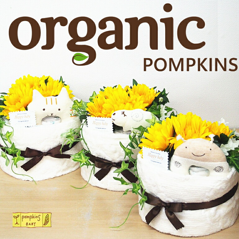 おむつケーキ オーガニック POMPKINS ポンプキンスラトル 今治タオル 出産祝 男の子 女の子