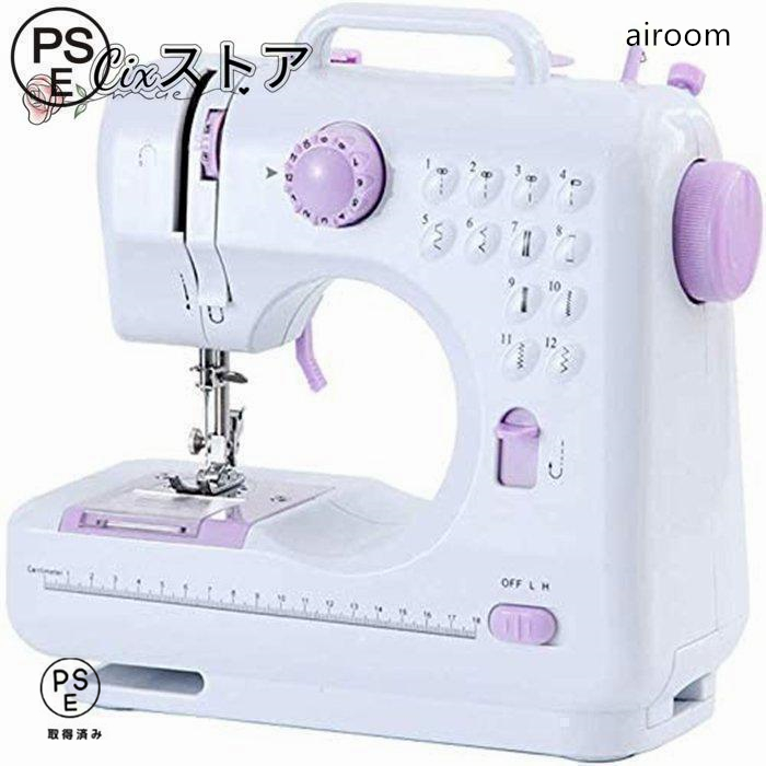 電動ミシン コンパクト 小型ミシン 家庭用ミシン 初心者 12種類の縫い目 フットコントローラー LED手元ランプ付き ACアダプタと単三電池