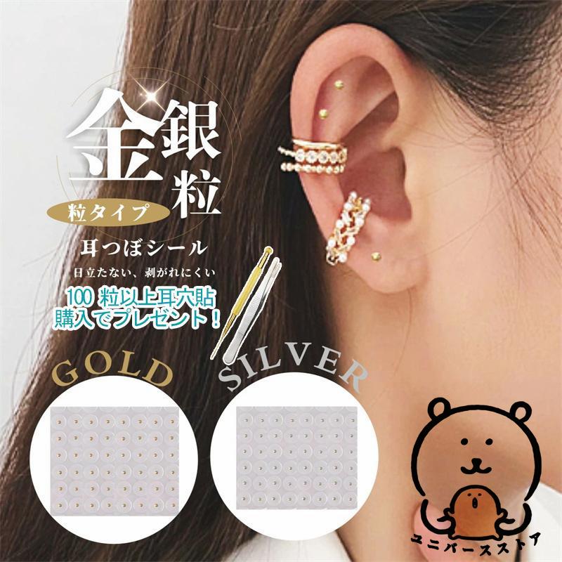 耳つぼシール 透明シール 金粒 銀粒 耳つぼジュエリー 耳ツボシール 粒タイプ 大量 耳つぼダイエット アレルギーフリー 美顔 美肌 健康グッズ 金属アレルギー