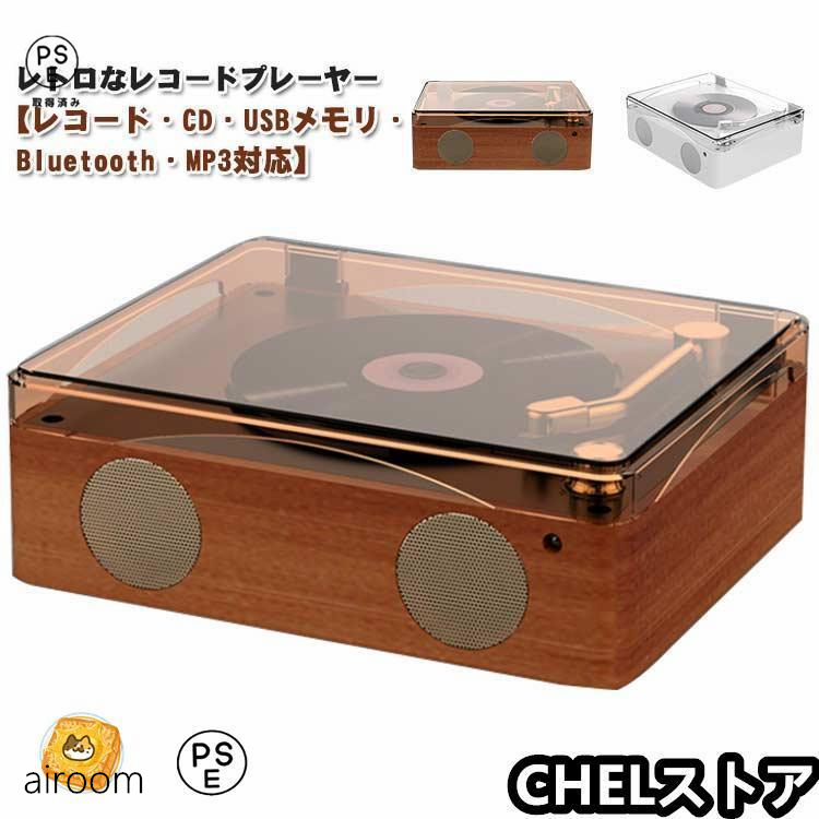 レコードプレーヤー CDプレーヤー リモコン付き USBメモリ Bluetooth MP3対応 音楽 マルチプレーヤー 高音質 スピーカー レトロ U