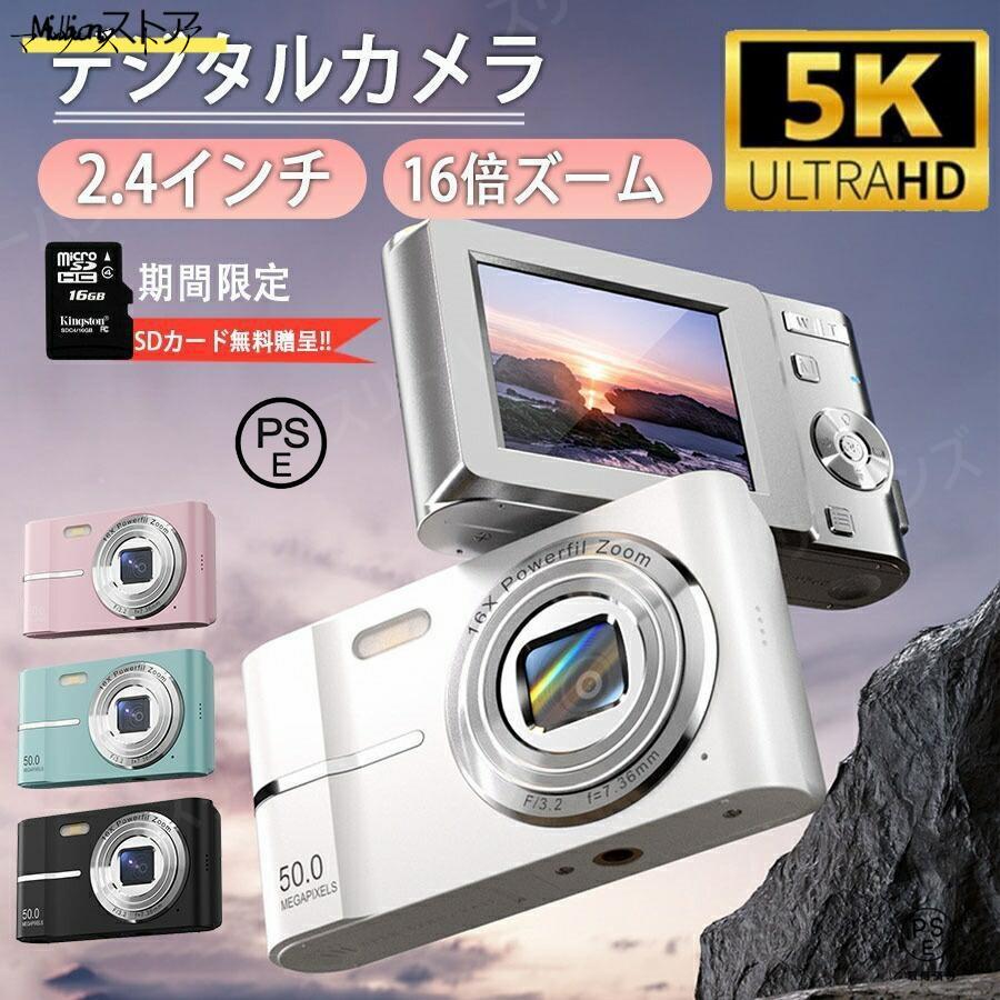 デジタル ビデオ デジカメ 5k画質 16倍デジタルズーム 小型 高画質 軽量 自撮り 動画 撮影 5000万画素 キッズ オートフォーカス 学生