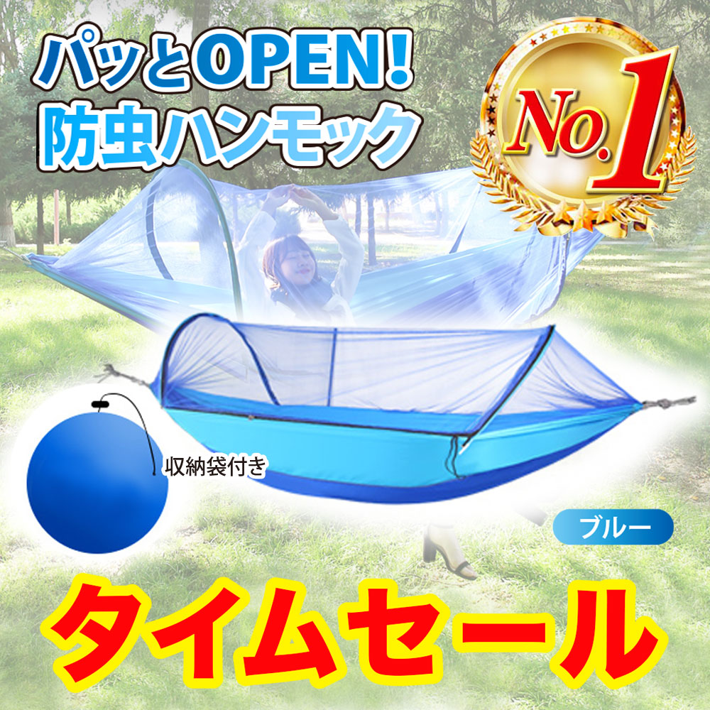 ハンモック 蚊帳付き アウトドア キャンプ ソロ ビーチ 自宅 庭 虫除け 折り畳み 軽量 コンパクト 収納袋付き