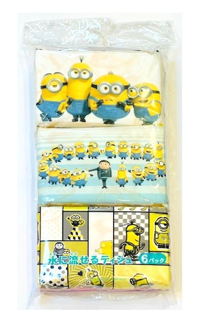 【在庫限り特価品】 水に流せるミニポケットティシュ ミニオンズ 6パック入 (柄指定不可) 1個