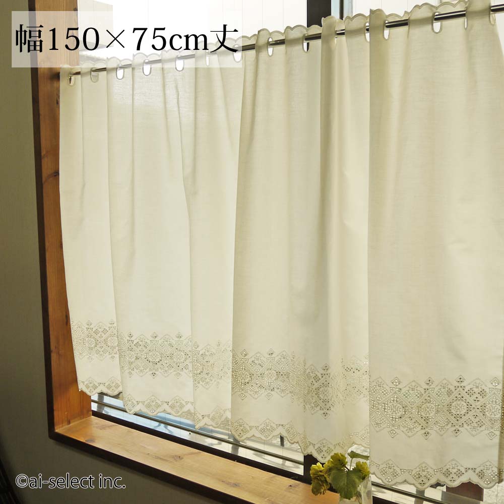 ai 標準幅 目隠し カフェカーテン アイボリー 横幅約150cmx75cm シンプルナチュラル エンブスクエアー ls 小窓 おしゃれ 北欧 綺麗 セミロング