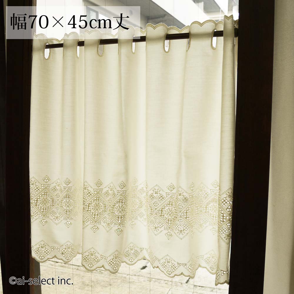 ai カフェカーテン ポスト投函で送料無料約70x45cm 細幅 カフェカーテン シンプルナチュラル エンブスクエアー ls 目隠し 棚隠し アイボリー 小窓 北欧 ショ