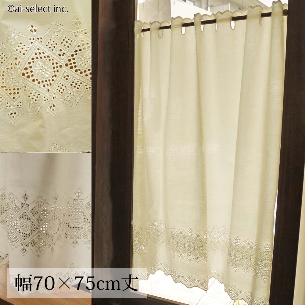 ai 送料無料 約70x75 細幅 カフェカーテン 目隠し ls アイボリー シンプルナチュラル エンブスクエアー 小窓 おしゃれ 北欧 エンブ生地 セミロング