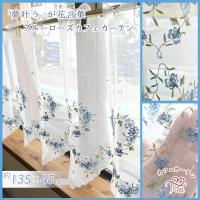 ai カフェカーテン ポスト投函で送料無料 花言葉 夢叶う ブルーローズ 135×45cm ショート 半透明オフホワイトの生地に薄色ブルーローズの刺繍 LC