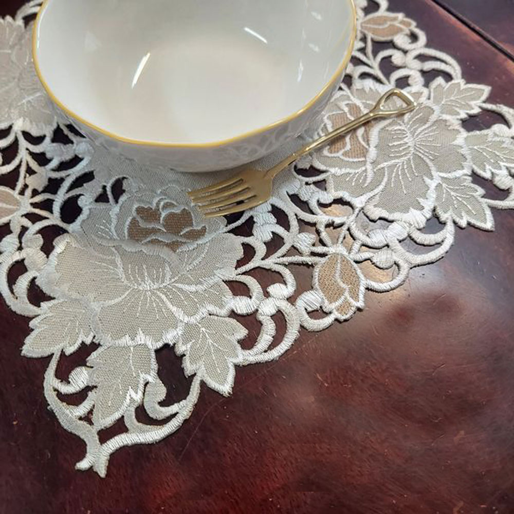 モダン ランチョンマット テーブルセンター ドイリー 正方形 綺麗 25×25cm おしゃれ レース ローズ 薔薇 撥水加工