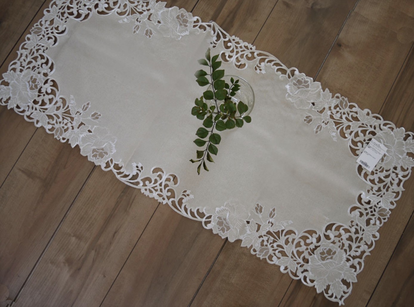 あすつく 水&汚れをはじく ベージュ テーブルセンターL 40x90 食卓テーブルに サイドボード 撥水性なので花瓶の下に敷いても安心 ローズ刺繍 シックな
