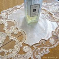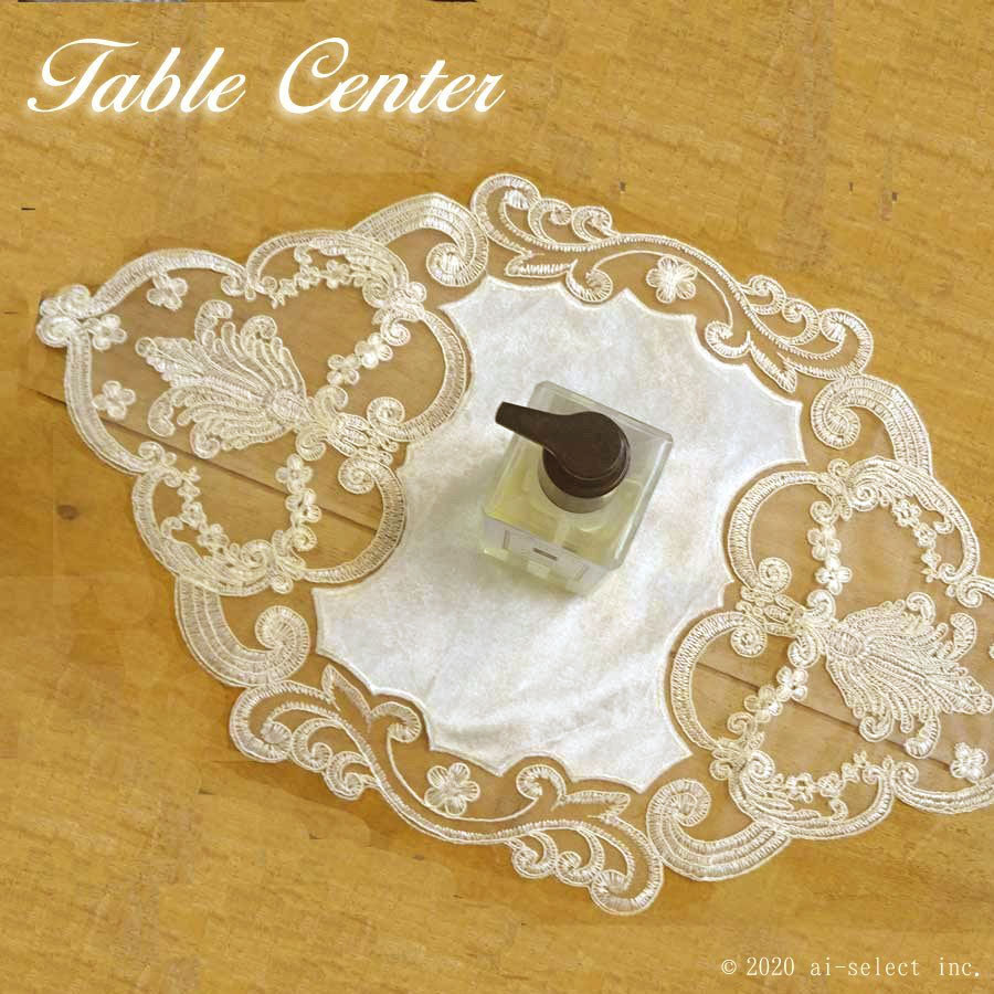ノーブルなドイリー 30×50cm フレンチレース使用 テーブルセンター シャンパンゴールドが上品な華やかさ プレゼント シャビー お礼 sn