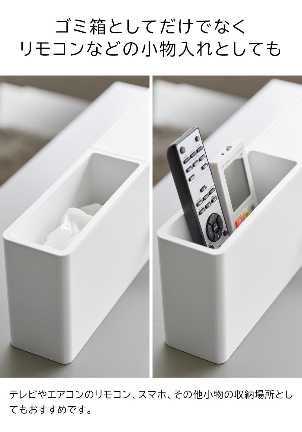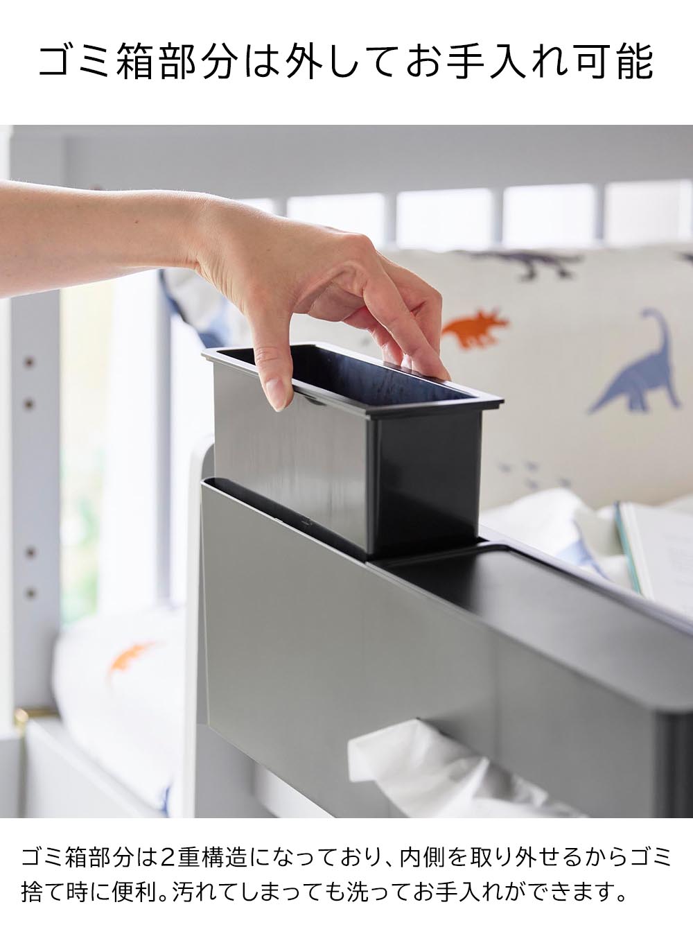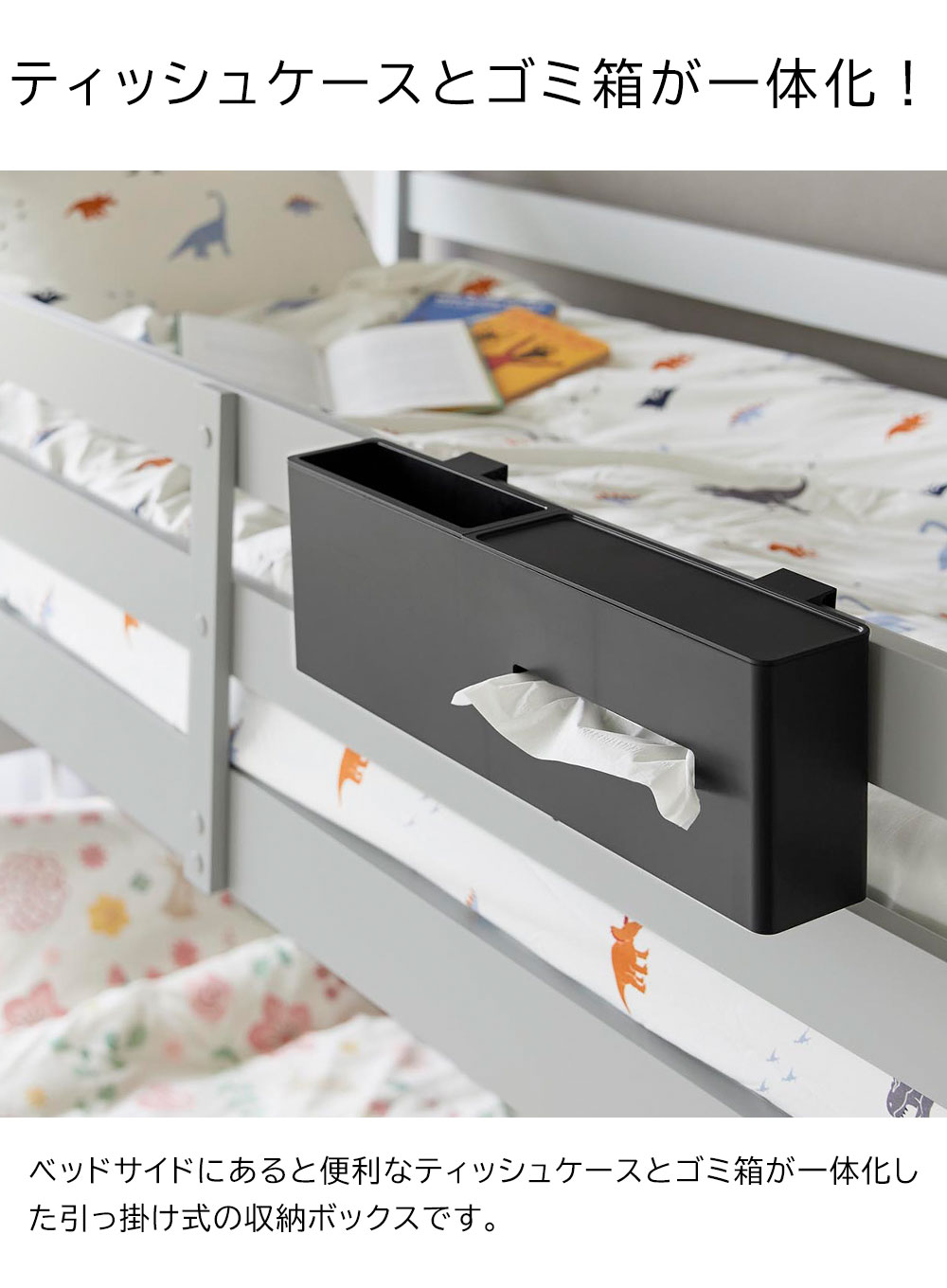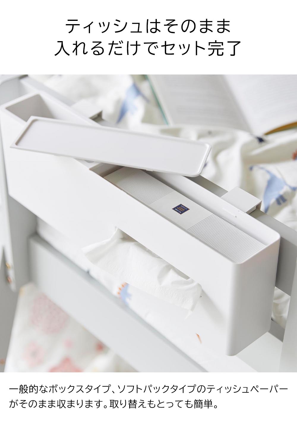 引っ掛けティッシュケース&ダストボックス タワー ![]() ティッシュケースとゴミ箱を ティッシュケースとゴミ箱が一体になった引っ掛け式収納ボックスです。ベッドフレームに引っ掛けて取り付けられるので、サイドテーブルが置けない限られたスペースにも、ティッシュとゴミ箱がスマートにセットできます。高さのある2段ベッドやロフトベッドにもおすすめ。ティッシュケース部分は蓋がトレーになっており、メガネなどの一時置きにもぴったりです。ゴミ箱部分は着脱式のため、ゴミ捨てもラクにできます。また、汚れても洗ってお手入れできます。ゴミ箱以外にもリモコンやスマホの収納としても便利です。フックを使わずに置き型として使用も可能。テーブルやキャビネット、カウンター上など、様々な場所でお使いいただけます。 ![]() ![]() ![]() ![]() ![]() ![]() ![]() ![]() ![]() ![]() ![]() ![]() ![]() ![]() ![]() |