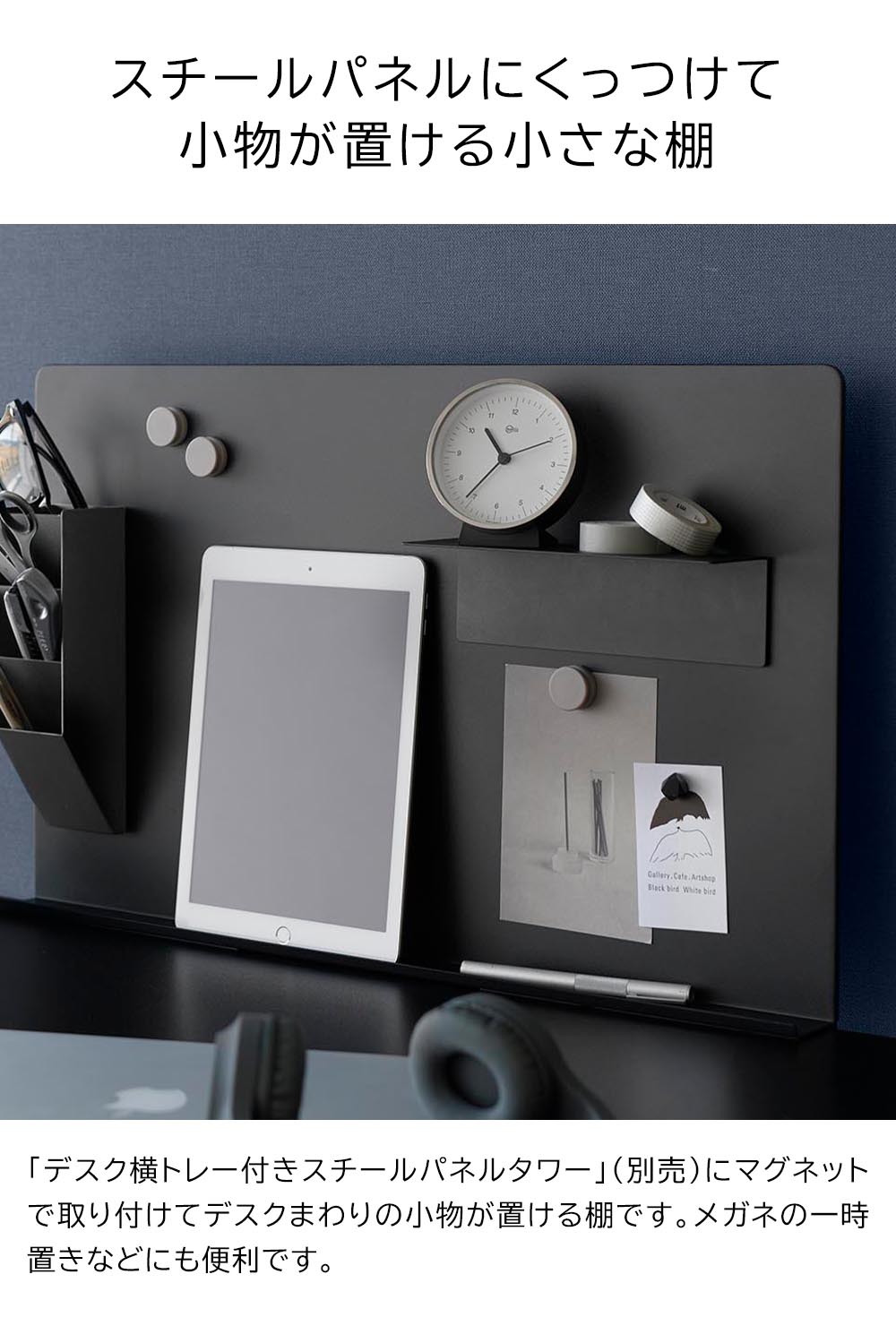 マグネット棚 タワー スチールパネル対応 ![]() スチールパネルにくっつけて 別売りの「デスク横トレー付きスチールパネル タワー」にくっつけて簡単に設置できるマグネット式の棚です。スチールパネルのどの位置にも取り付けられ、使いやすくカスタマイズできます。また、棚板は逆さまにしても使える仕様だから、お好みの向きで設置できます。置き時計やデスク小物を置くのに最適な幅20cmの小さめサイズで、メガネの一時置きなどにも便利です。マグネット設置だからスチールパネルだけでなく、マグネットのつくあらゆる場所で利用可能。冷蔵庫や洗濯機、オフィスのスチール棚やロッカーなど、様々な場所に手軽に棚を追加できます。 ![]() ![]() ![]() ![]() ![]() ![]() ![]() ![]() ![]() ![]() ![]() |