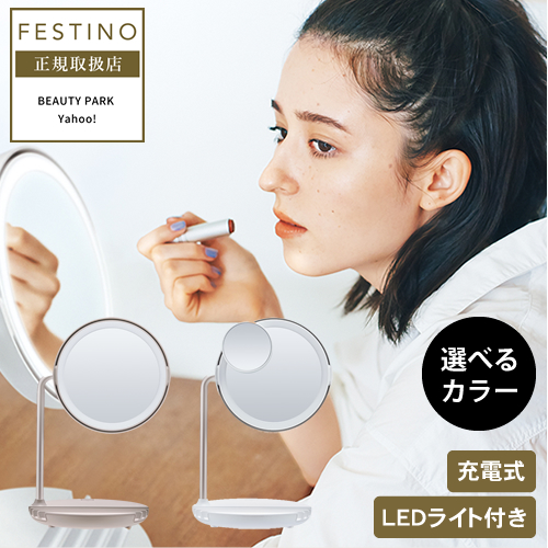 フェスティノ チャージング LED ファン ミラー 充電式 ホワイト/サンドベージュ 送料無料/選べるカラー