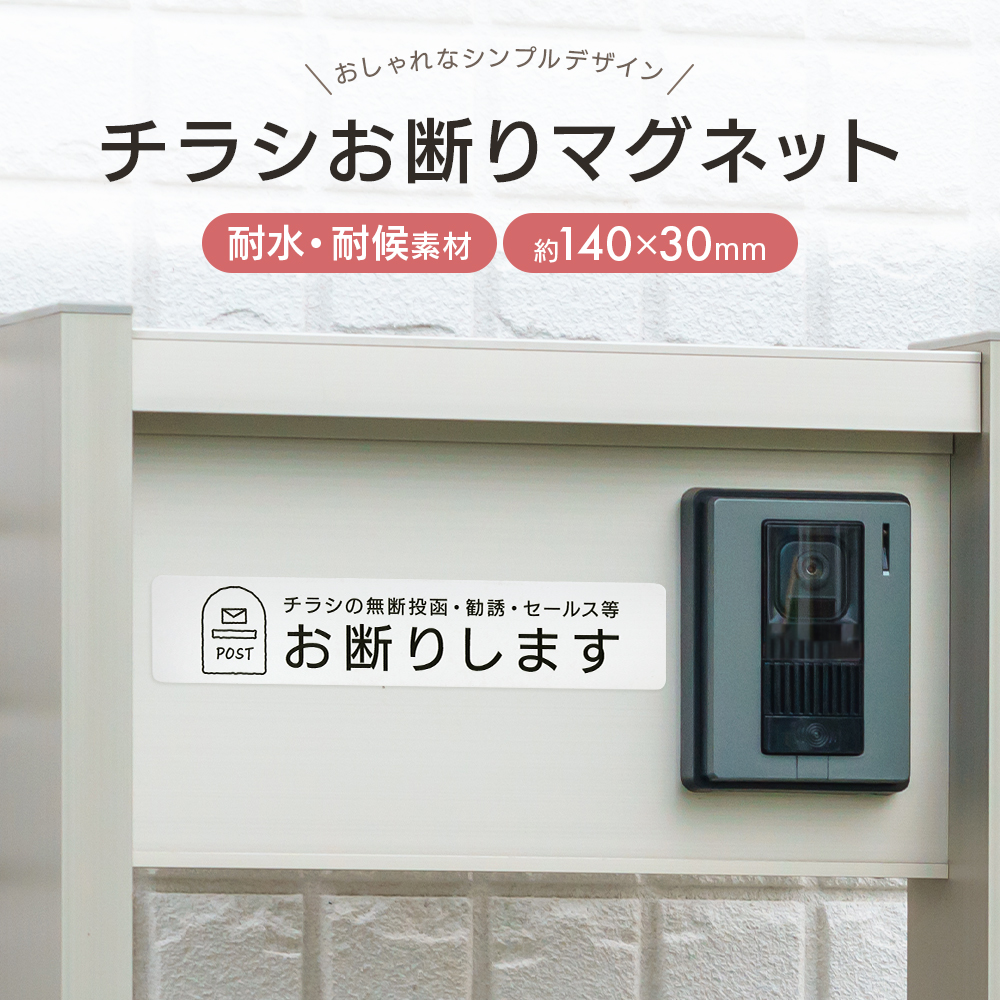 マグネット チラシお断り 可愛い シンプル デザイン 勧誘 無断 ポスト投函 禁止 お断り ちらし ポスティング 玄関 防止 防犯 耐水 マグネットタイプ 磁石 横