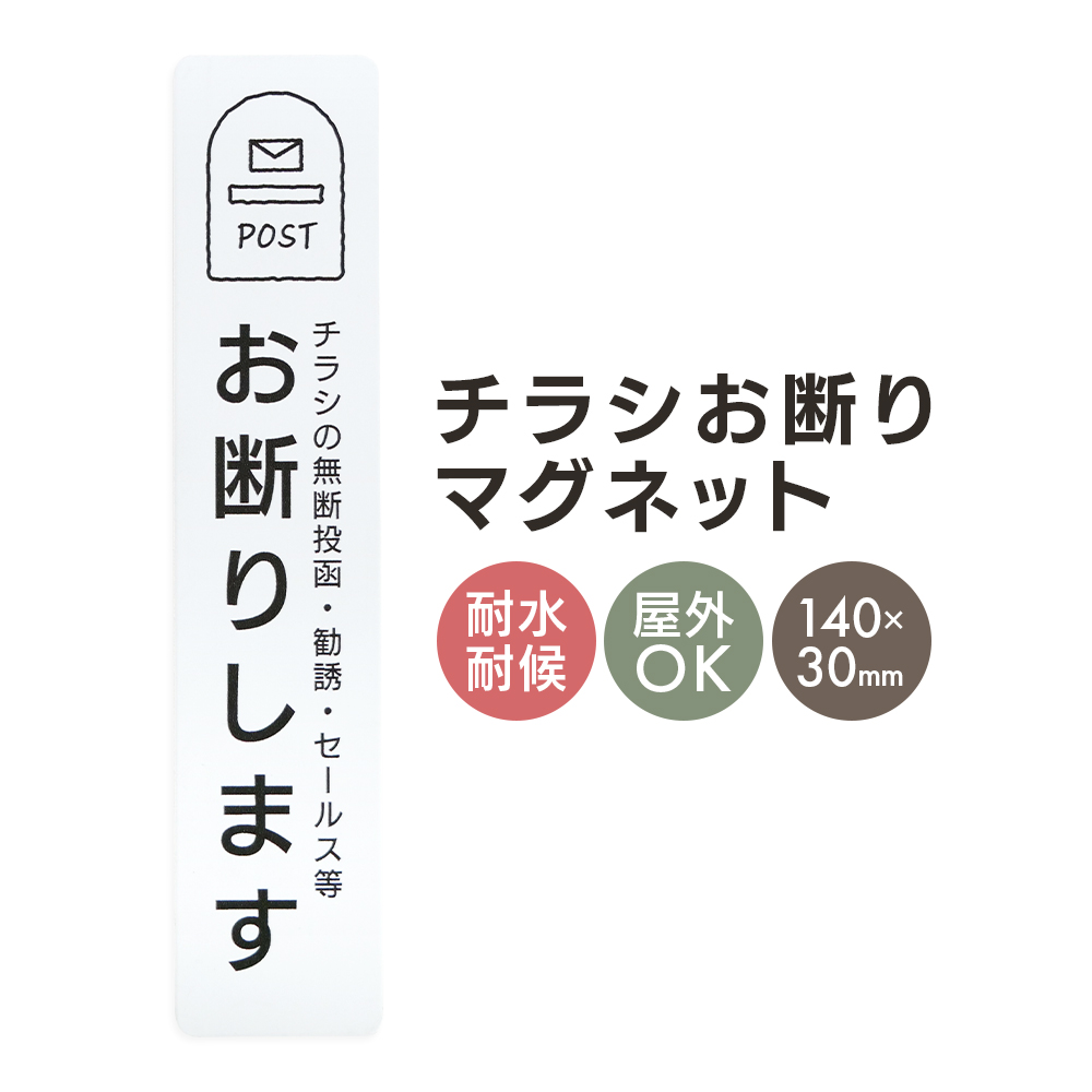 マグネット チラシお断り 可愛い シンプル デザイン 勧誘 無断 ポスト投函 禁止 お断り ちらし ポスティング 玄関 防止 防犯 耐水 マグネットタイプ 磁石 縦