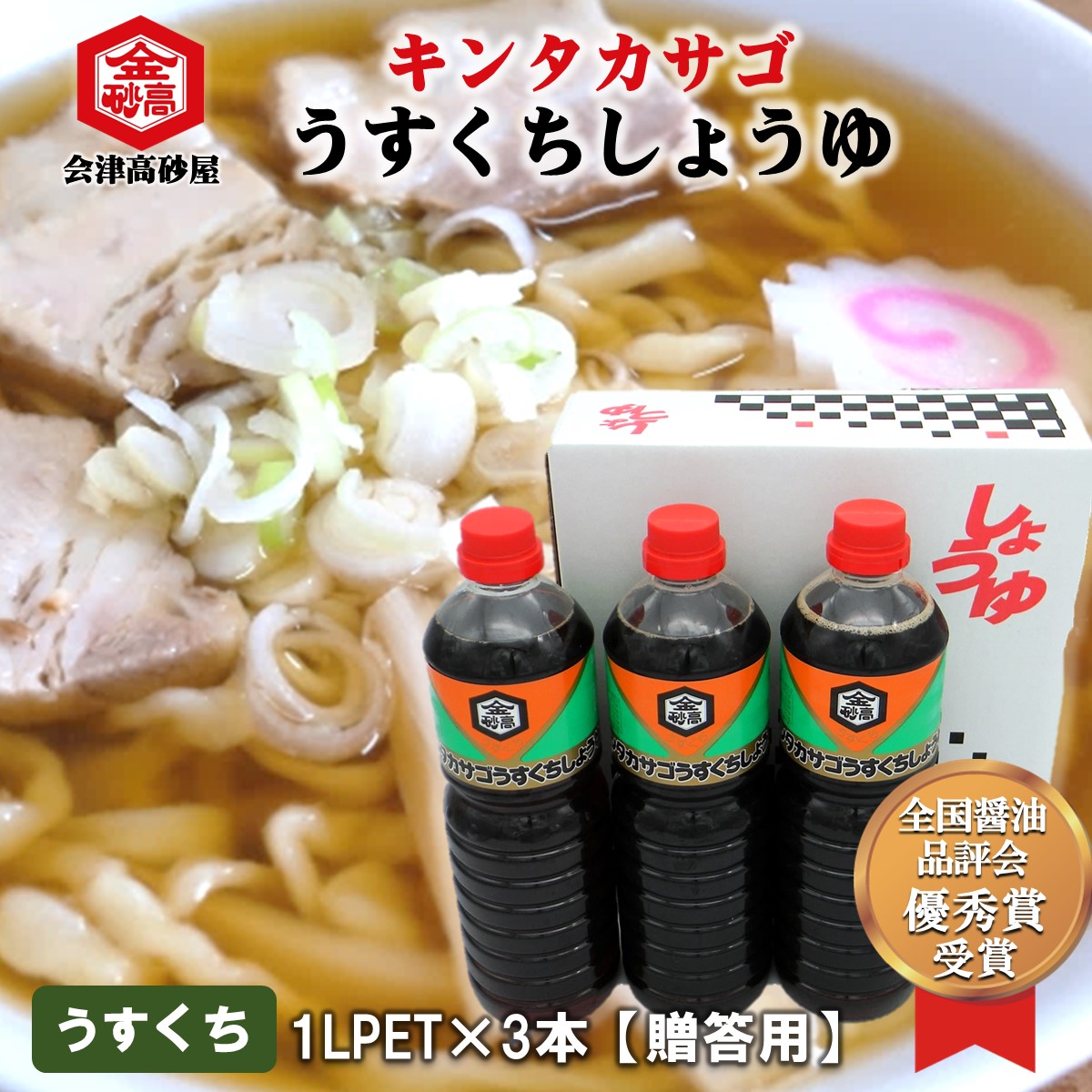 会津高砂屋 高砂屋商店 醤油 淡口しょうゆ うすくちしょうゆ キンタカサゴ 贈答用 美味しい しょうゆ 刺身 ラーメン 喜多方ラーメン 煮物 汁物 こづゆ 割烹 淡麗 ギフト 中元 歳暮 手土産 調味料 お取り寄せ 全国醤油品評会 優秀賞受賞 福島県 会津 会津坂下町