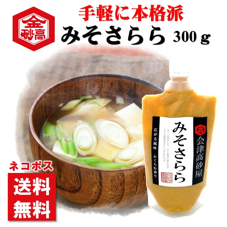送料無料 会津高砂屋 みそさらら300g さらさらとける だし入り お手軽味噌汁 味噌炒め 自然派味噌汁 発酵食 ネコポス