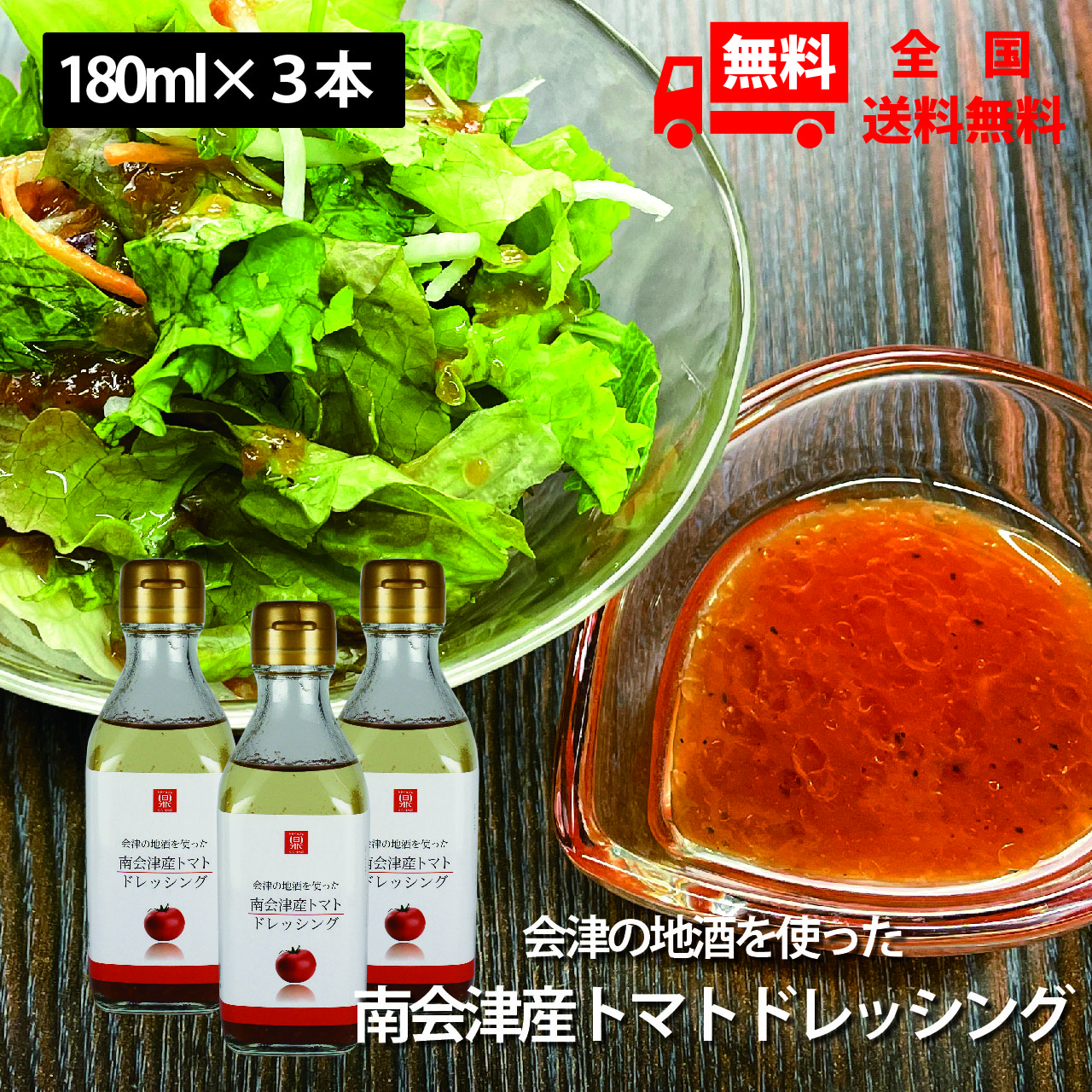 会津の地酒を使った南会津産トマトドレッシング 180ml×3本セット 送料無料 ご当地ドレッシング 南会津南郷地区のトマトを使用