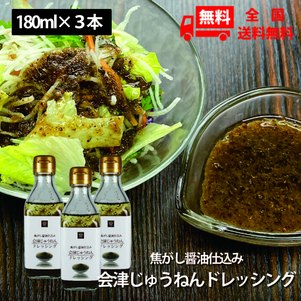 焦がし醤油仕込み 会津じゅうねんドレッシング 180ml×3本セット 送料無料 ご当地ドレッシング えごま オメガ3脂肪酸