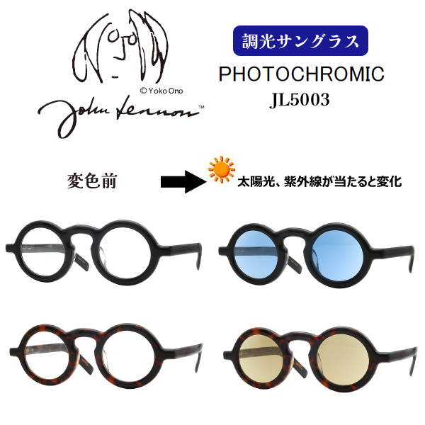 日本製 ジョンレノン John Lennon/レンズの色が変化する 調光レンズ サングラス セルフレーム 丸眼鏡 メンズ レディース JL5003-1/JL5003-2/オプチ
