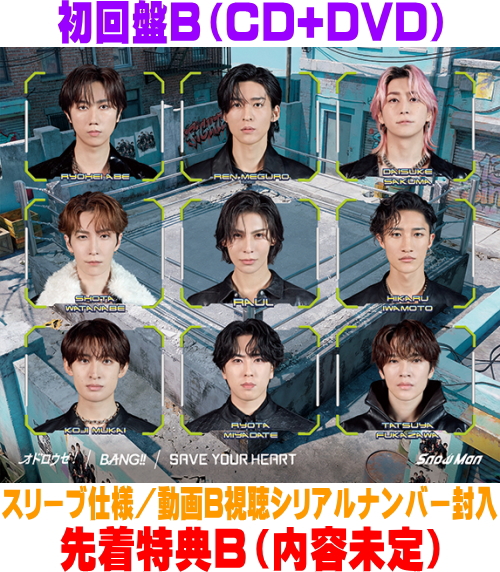 | [CD] 1. オドロウゼ! 2. BANG!! 3. SAVE YOUR HEART [DVD] ・「オドロウゼ!」Music Video ・「STARS」Music Video ・「オドロウゼ!」マルチアングル映像 ・「オドロウゼ! / STARS / ジャケット写真撮影」Behind The Scenes ・“Dome Tour 2025-2026 ON”お疲れ様会 |