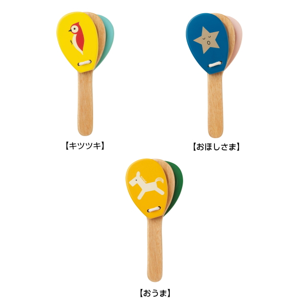 ナカノ MUSIC FOR LIVING キッズパーカッション/パタパタフラッパー/柄付カスタネット 木製 天然素材 楽器 演奏 知育楽器 知育玩具 おほしさま KP-150HF/NMG