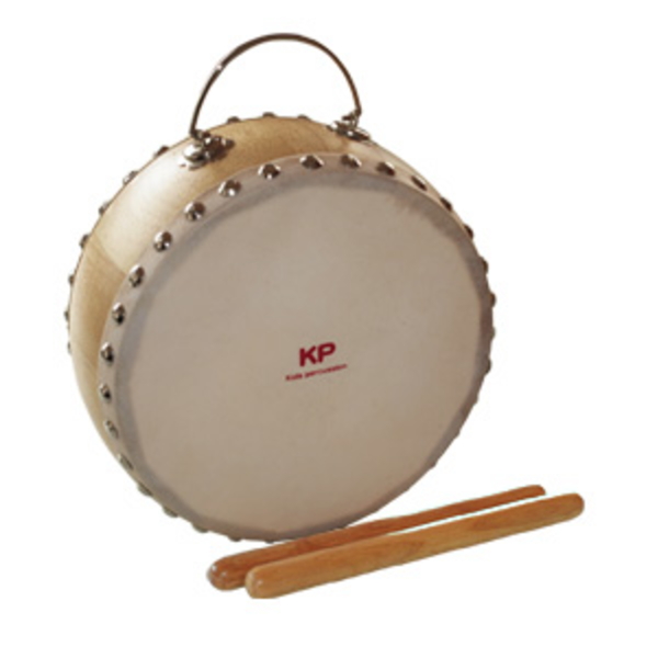 バチを使って、手のひらで、指先で、色々な部分を使って革の部分だけでなくフレームの木の部分を叩くと、様々な表情の太鼓の音を表現してくれます。 お子さまの自由な発想で感性を豊かにできる素晴らしい楽器です。