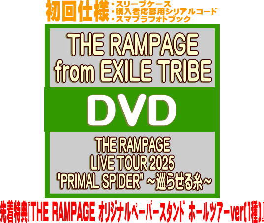 ■Blu-rayは こちら ★2026/2/4発売【THE RAMPAGE LIVE TOUR 2025 "PRIMAL SPIDER"】 ■DVDは こちら ■Blu-rayは こちら |