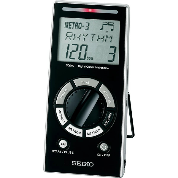SEIKO セイコー/デジタル クオーツメトロノーム/大型ダイヤル式 アダプター対応 多機能 ハイスペック 見やすい 大画面 スタンド付き 簡単 ブラック SQ200/NMG