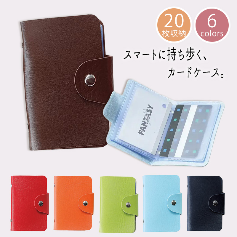 カードケース 大容量 20枚収納 レザー調 コンパクト メンズ レディース スナップボタン付き 名刺入れ ポイントカード収納 名刺 メンズ レディース