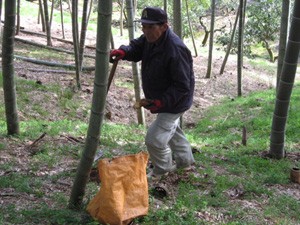 タケノコを収穫する滝本さん