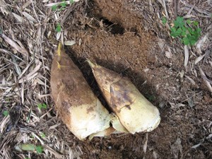 掘り出されたばかりのタケノコ